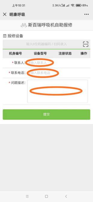 2. 輸入設備編號或掃描機身上二維碼,填寫里面信息及故障現(xiàn)象提交即可。