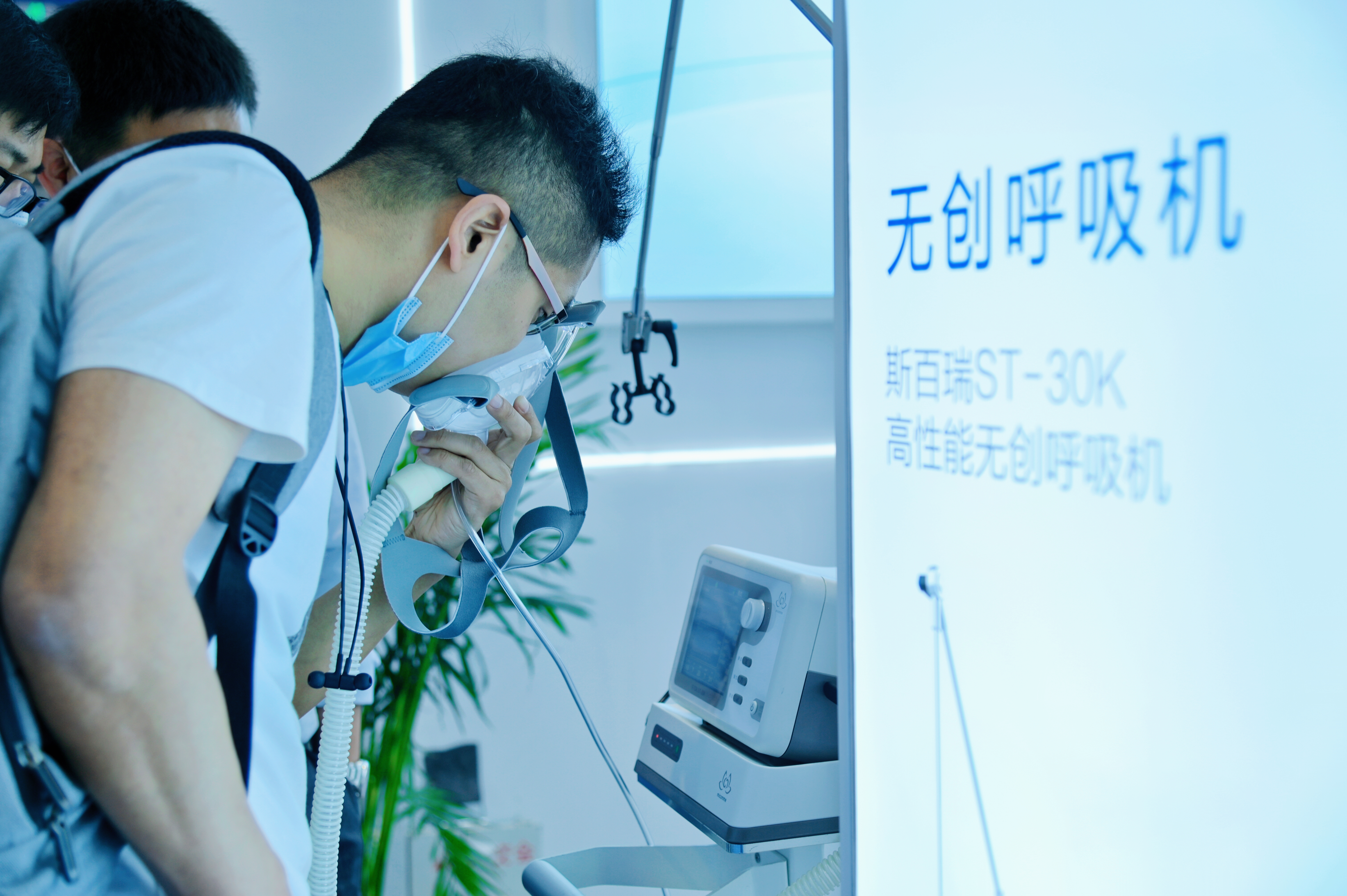 明康中錦展位以“醫(yī)用群星 煥新而至、家用新銳 創(chuàng)領(lǐng)未來”為主題,涵蓋斯百瑞高性能醫(yī)用無創(chuàng)呼吸機(jī)、高流量無創(chuàng)呼吸濕化治療儀、家用無創(chuàng)呼吸機(jī)等產(chǎn)品展示區(qū),直觀展現(xiàn)了斯百瑞高端呼吸診療設(shè)備智能化的全面升級(jí)。